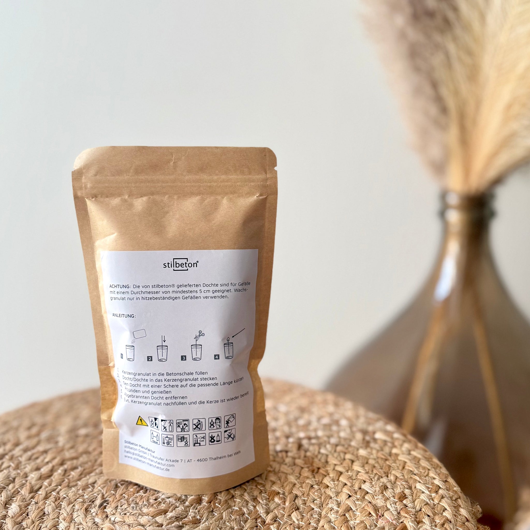 Das praktische Kerzengranulat von stilbeton® eignet sich nicht nur für unsere Indoor-Kerzen, sondern für sämtliche feuerfesten Gefäße. Die praktischste Art Kerzen anzuzünden!