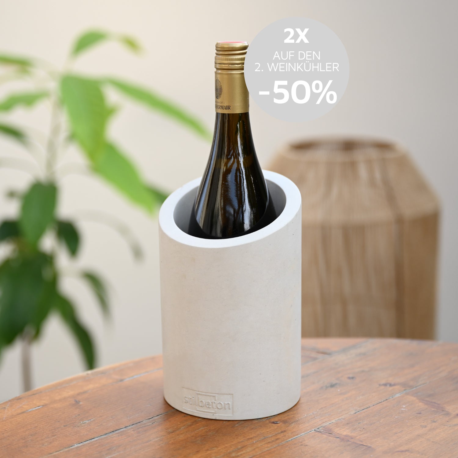 Das perfekte Set für Weingenießer. Der zweite Weinkühler zum halben Preis! Dank des Werkstoffs Beton hält unser Weinkühler deine Lieblingsflaschen auf der perfekten Serviertemperatur. So verspricht BERGAMO ausgiebigen Trinkgenuss für deine edlen Tropfen.